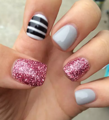 این هم یک مانیکور عالی دیگر برای افرادی که به ناخنهای کوتاه علاقه دارند! این طرح چندان وقت نمیگیرد و شاید حتی ۵ دقیقه هم طول نکشد! باورتان نمیشود اما اکلیل صورتی با خاکستری فوقالعاده میشود.